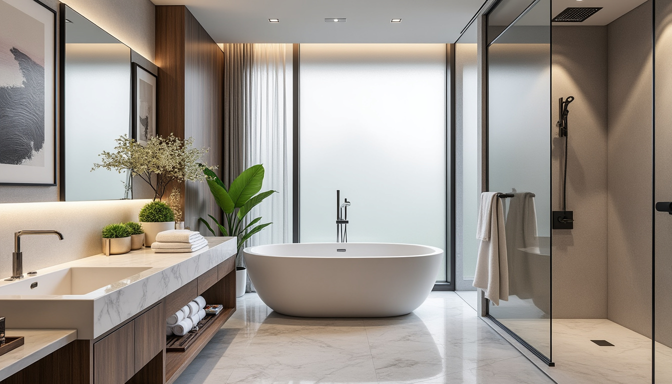 Pour les WC : cachez-les derrière un muret ou dans un recoin discret. Valorisez la baignoire îlot comme sculpture centrale. Optez pour une robinetterie encastrée — plus épuré, plus facile à entretenir.
